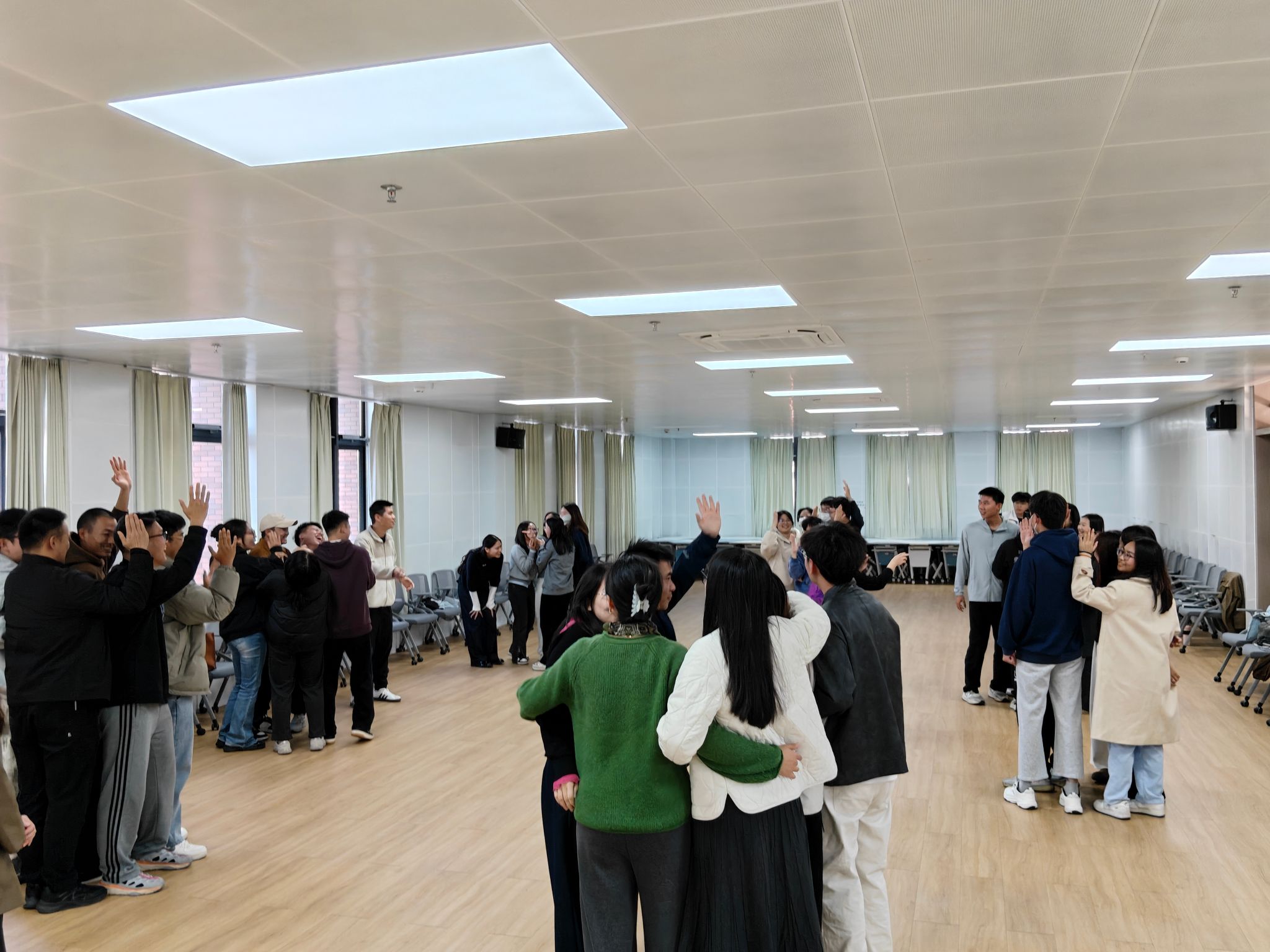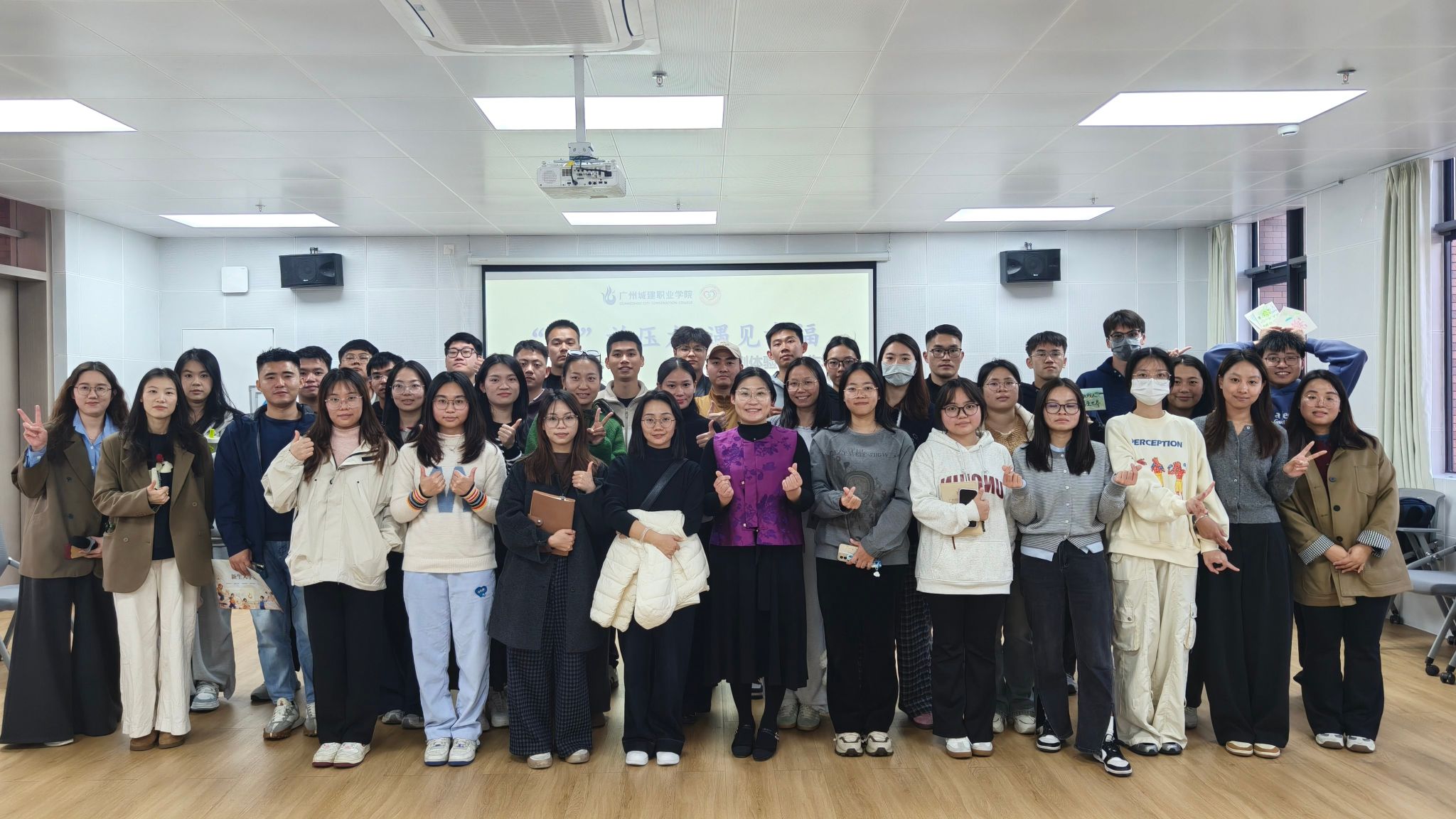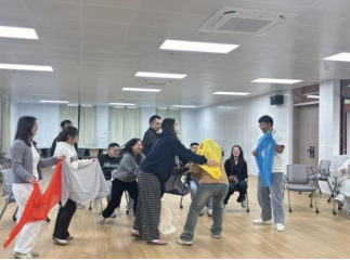 活动在轻松愉快的氛围中展开。通过进阶版手指操、互助捏捏操、桃花朵朵开、分组演绎代表学院等暖身互动,辅导员们迅速拉近距离,现场笑声不断,为后续环节奠定了开放、信任的基调。