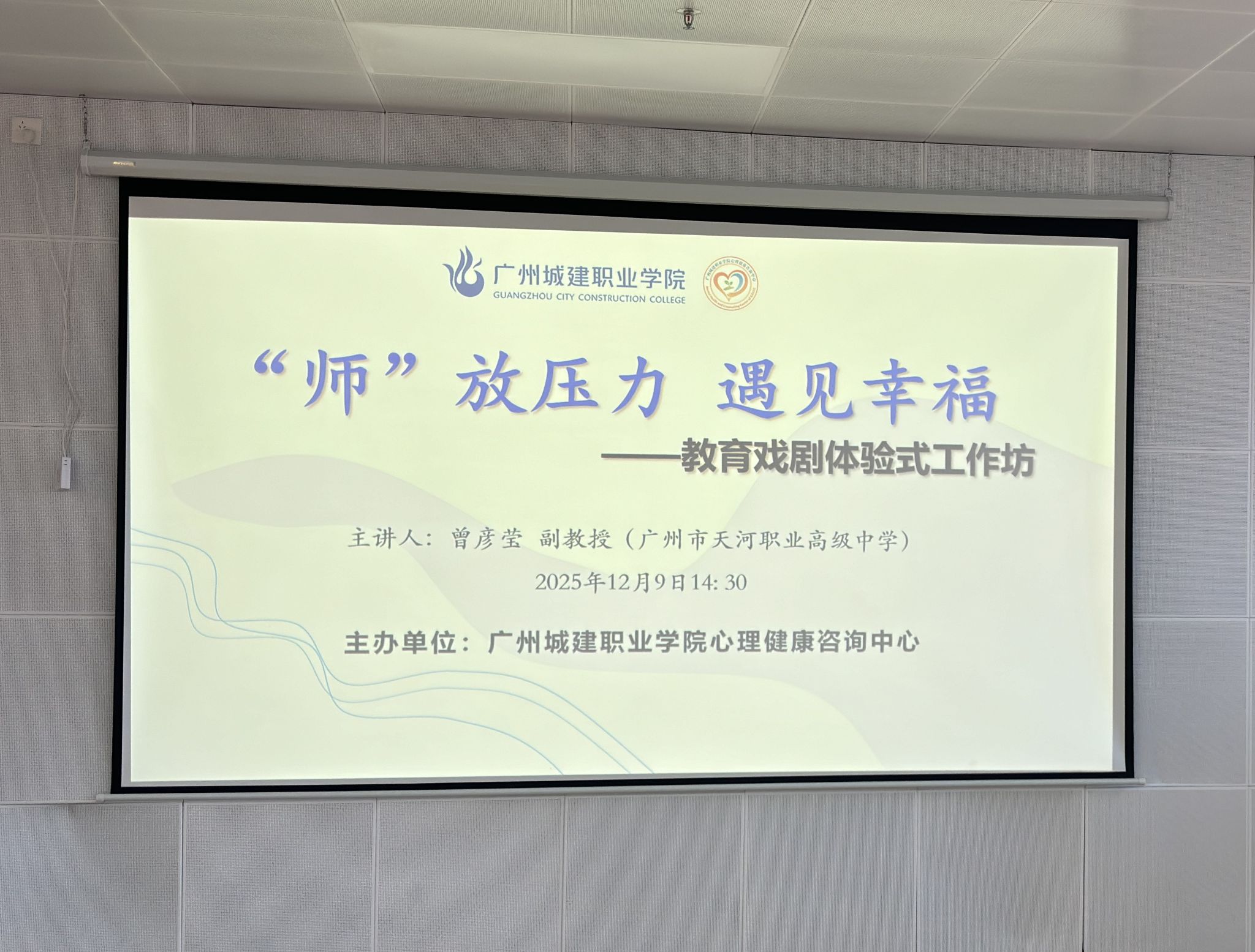 为切实加强辅导员队伍建设,促进辅导员交流与情感联结,提升队伍的幸福感和职业生命力,12月9日下午,清远校区心理健康咨询中心特邀广州市天河职业高级中学曾彦莹副教授,举办《“师”放压力,遇见幸福》教育戏剧体验式工作坊。近50名专职辅导员积极参与,在丰富生动的活动中释放压力、凝聚共识、赋能成长。