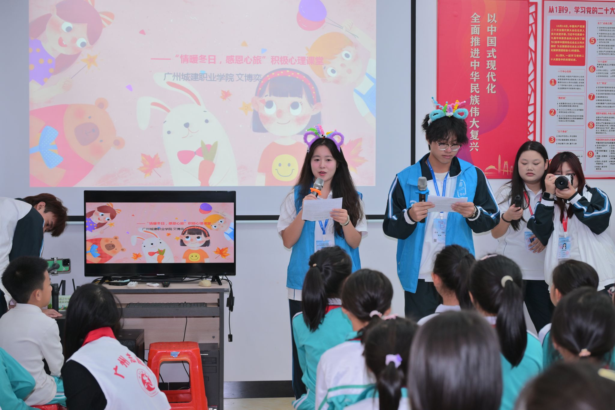 12月19日下午,从化区中田社区党群服务中心内组织开展“情暖冬日·感恩心旅”心理主题活动。本次活动由广州城建职业学院知行致远实践育人工作室、经济与管理学院心理辅导站联合中田社区党群服务中心、新城小学共同举办,旨在通过沉浸式、游戏化的感恩教育实践,在青少年心中播下感恩的种子,培育积极心理品质。