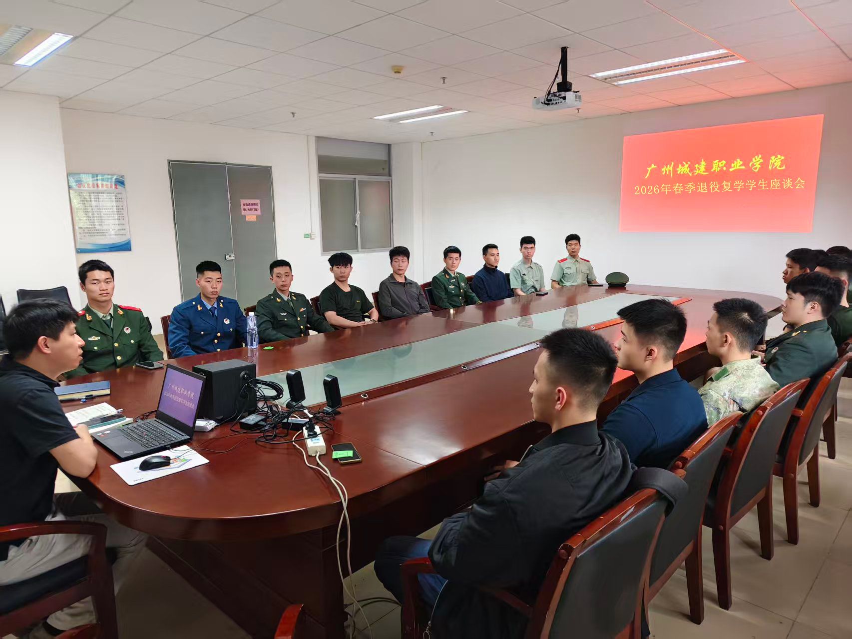 为切实做好退役复学学生服务保障工作,帮助同学们快速融入校园生活、明晰发展方向,3月24日下午,我校广州校区组织召开2026年春季退役复学学生座谈会,为退役复学学子送上关怀与指导,相关职能部门老师及全体春季退役复学学生参加本次座谈会。